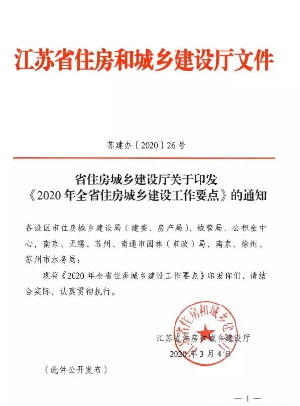 江蘇省住房和城鄉(xiāng)建設(shè)廳關(guān)于印發(fā)《2020全省住房和城鄉(xiāng)建設(shè)工作要點》的通知,其中明確提到:
